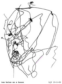 Hayden has titled this drawing, “Two holes on a house”. Sheer poetry.