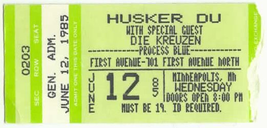 6/12/85 First Avenue w/John Ticket Price: Unknown
