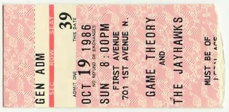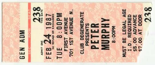 3/11/87 First Avenue w/John Ticket Price: Unknown