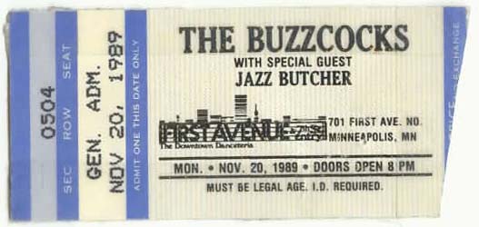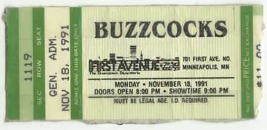 Anyway, the closest John and I had previously gotten to see The Buzzcocks was the fantastic Pete Shelley solo show (First Avenue 8/20/86). That show had impressed the hell out of us, but now we were going to see them all! We were ready!