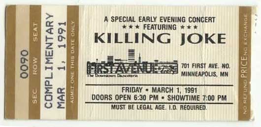 3/1/91 First Avenue w/John Ticket Price: Comp. Tickets