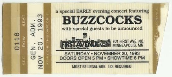 Geez! Of the last five shows I attended at First Avenue (or anywhere else, I’m sure) three were is see The Buzzcocks. I guess I really liked these guys. You will also notice that the numbers of shows I went to per year had greatly reduced. One or two a year was my pace.