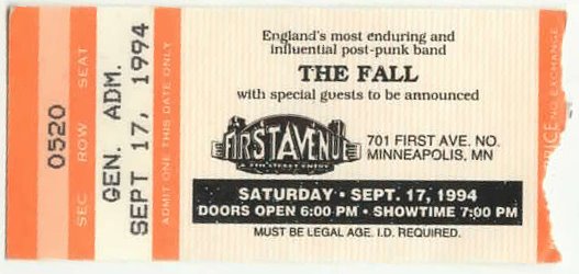 Yep, I went to this show alone. I’m not sure why John didn’t go. It is unusual that John wasn’t there, The Fall being one of his favorite bands. It’s possible that the concert happened while John was in Europe.