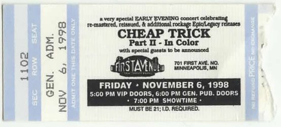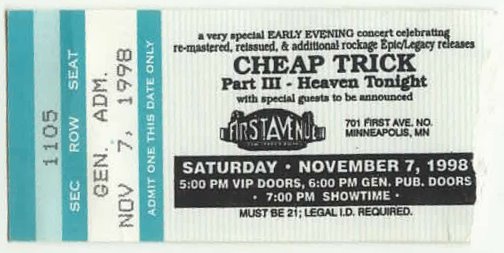This was the first night of three night concert event. Cheap Trick had rereleased their first three albums: “Cheap Trick”, “In Color” & “Heaven Tonight”. To promote the rereleases the band did this three night concert event with each night focusing on each album. They would play each song, in order, from that night’s featured LP. Then they would play a variety of their other songs afterward.