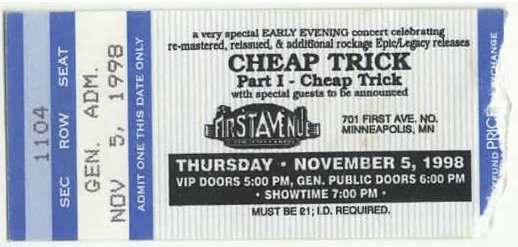11/7/98 First Avenue w/Dave Ticket Price: Unknown