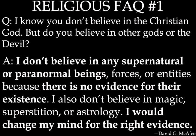 I quickly went over David McAfee‘s Facebook series of Religious FAQs. (I may have pronounced David’s name incorrectly as I described him and his Facebook mission. Sorry, David.) David has written a book called “Disproving Christianity and Other Secular Writings” and his new book, “Mom, Dad, I’m An Atheist: The Guide to Coming Out a Non-Believer” will be published soon. On his Facebook page his respectfully debates believers and he decided to put together a list of FAQs. I shared the first three on the show and might share more in future episodes.