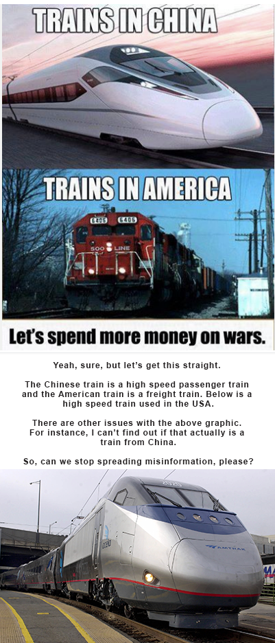 One train is a high speed passenger train, the other is a freight train. The idea is to get us to think America has crappy trains, but they aren’t being honest in their comparison. Below is the graphic as adjusted by me…