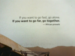 I spotted a page of a magazine posted on an office wall the other day. It was a full page photograph with a caption meant meant to inspire. The caption was quoting an African proverb: “If you to go fast, go alone. If you want go far, go together.”