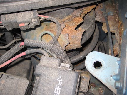 The pictures show just how rusted out a couple pretty important parts of our van’s suspension system are. I took in it for an oil change and brought it home to junk it.