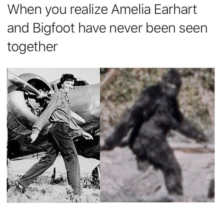 1) Speaking of bigfoot pictures, someone on the internets put the above images of Amelia Earhart and Patterson/Gimlin’s bigfoot together and made a truthful observation. It’s brilliant and funny. And that’s cool.