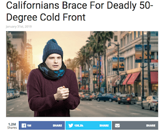 I talked about how the national news media seems to concentrate on Chicago when these extreme cold events take place in the Upper Midwest, despite the fact it was colder in the Twin Cities, but before I get too selfish in my suffering I must remember those poor folks in California. The headline to the article here made me laugh. As it was intended to.