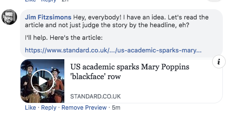 An article on the internets received a resounding “Aw, come on!” by folks on social media recently. A screen shot of an article headline and photo (see above) was shared on Facebook and people were outraged at the suggestion. They thought the professor was just looking to be offended.