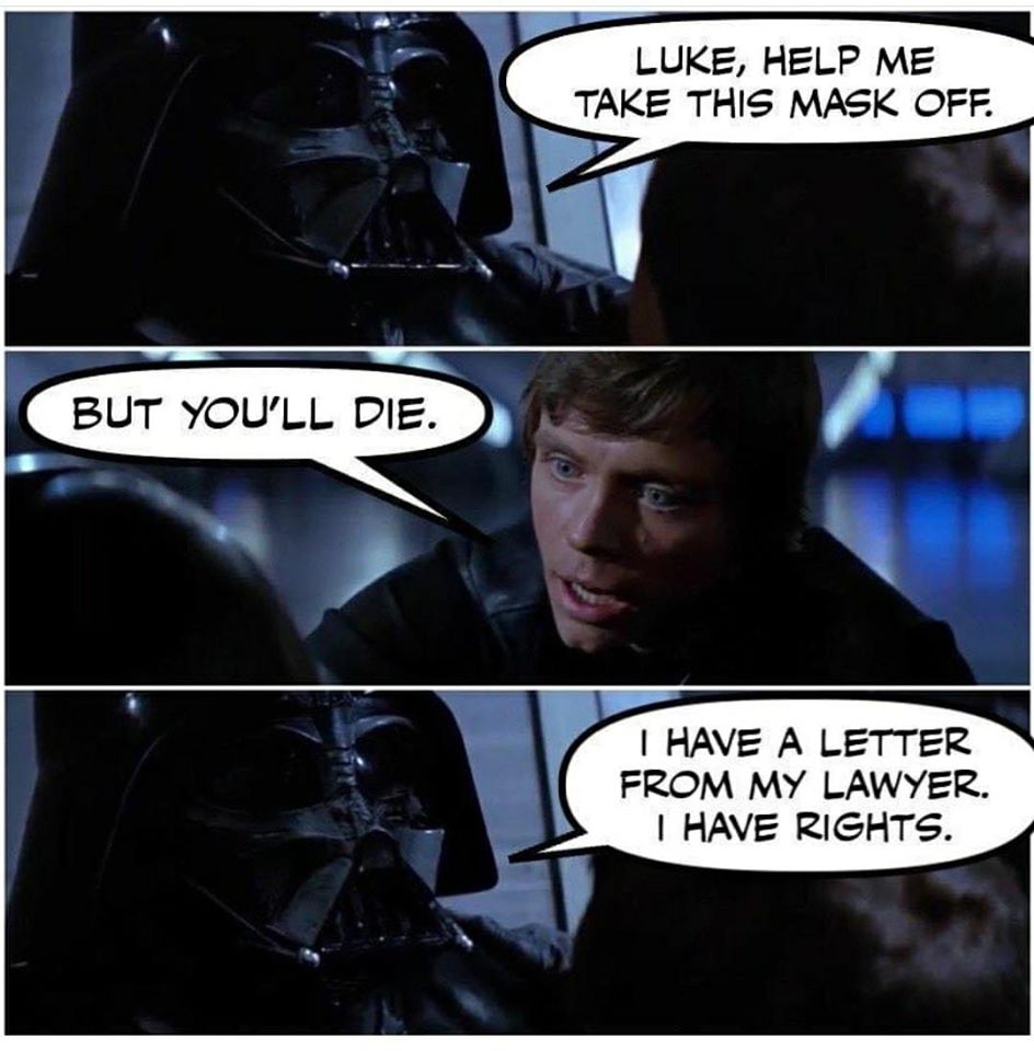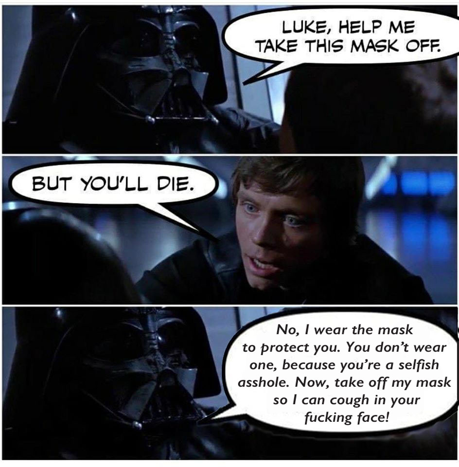 To be more accurate as to why we wear masks and seeing as how Luke isn’t wearing one, this meme…