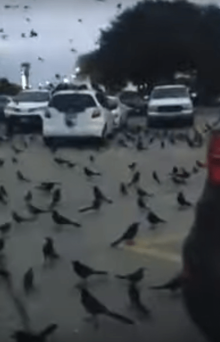 It’s called murmuration. That’s when birds such as starlings, warblers, and grackles flock together and fly around without knocking into each other. Often they make awesome shapes and patterns as they fly through the sky. I’m told this happens in Texas every year in certain store parking lots.