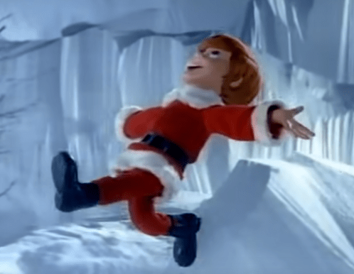 While doing research for my holiday special conversation with the G.O.O.C.H Squad, I rewatched one of my choices the Rankin/Bass special Santa Claus Is Coming To Town. There was something I noticed during the Put One Foot in Front of the Other musical number. Kris Kringle does a run in the air flying/floating move.