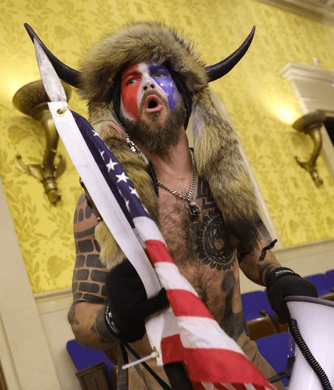 The most recoganizable Trumper involved in the attack, the Grand Poohbah of the Royal Order of the Water Buffalo, the shirtless fellow in the horned fur helmet and painted face, the QAnon Shaman has been arrested and his mother begged that her boy be fed organic food otherwise he would get physically sick. Oh, no. We can’t have him getting sick.