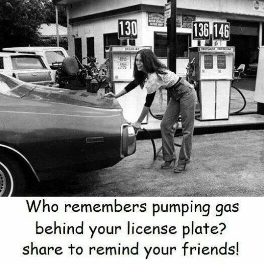 Going by the the price of unleaded gas and the fashion of dress in the image showing that fetching young woman filling up, I estimate the year to be 1981. Adjusting for inflation, the $1.36 gallon of gas in 1981 would be $3.89 today. Conversely, a $2.39 gallon of today’s gas would cost a mere 83 cents back then.