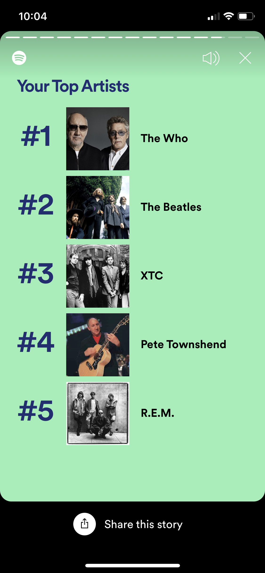 My Top Five Songs are a different matter. Nope, Baba O’Riley did not make the list. I purposefully pick a handful of songs and pop them in the queue. Those songs get plenty of listens by me and it’s fun to see which make the top five.