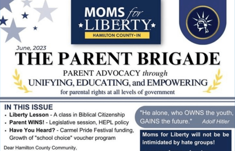 Moms For Liberty (for rich, white, straight, Christian cis males) forgot the importance of context when they included a quote by Adolf Hitler. There was no explaining why his quote was posted just under the headline banner of their newsletter. They later claimed it was a warning to parents to not let the guv-ment turn our kids woke, apologized for any offense given, and took down the dog whistle.