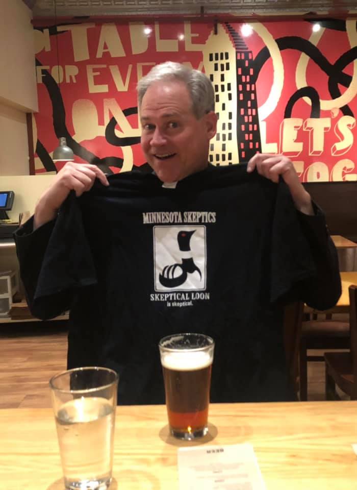 World famous skeptic and podcaster Brian Dunning is on a whistle-stop tour of North America. He’s driving his Tesla across country, making stops all over the place, to talk to his fellow skeptics. And this past Wednesday (Amy’s and my Anniversary, remember?), Mr. Dunning paid a visit to an extra special extra Minnesota Skeptics meet-up.